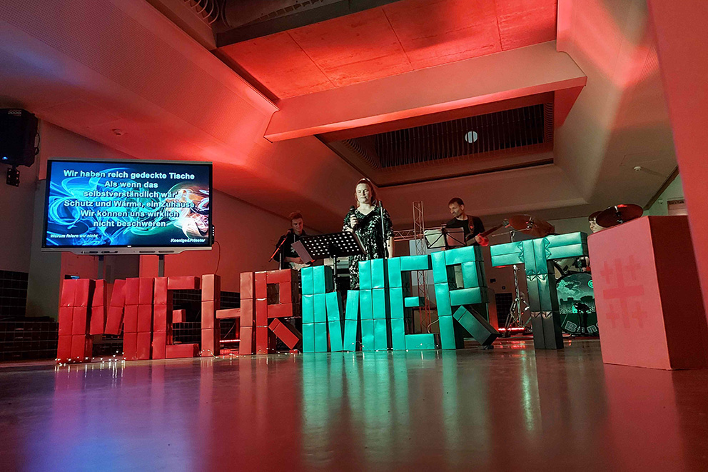 Jugendliche und Junge Erwachsene gestalten einen Gottesdienst für junge Menschen, der thematisch an ihre Lebenswelt angepasst ist. Besonderes viel Wert wird auf Lobpreis und Dekoration gelegt.